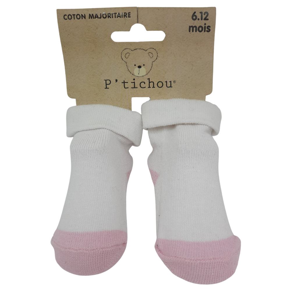 1pr Baby Socks – Plain Wht w/Pnk Toe Sz 6-12m