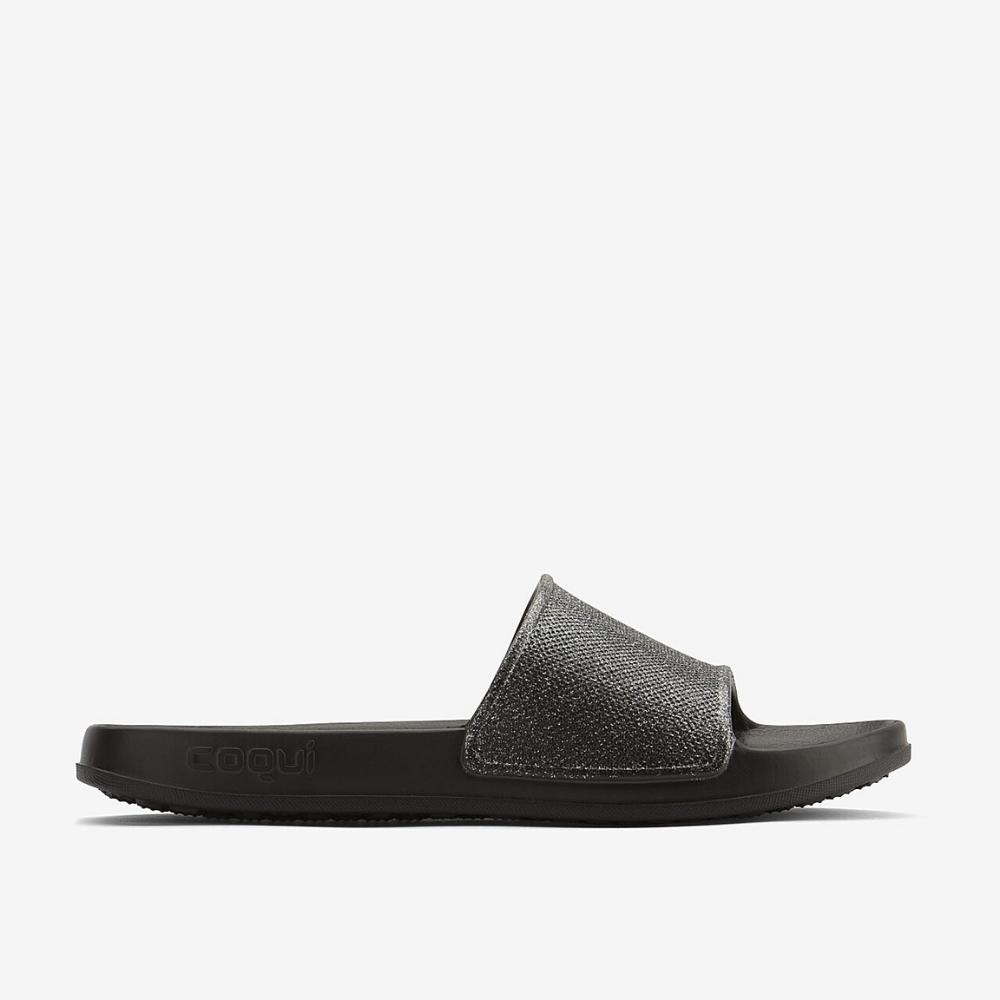 Coqui – TORA Ladies Sliders Glitter BLACK/GOLD
