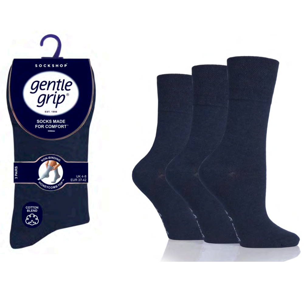 Gentle Grip® – Plain Socks 3 Pairs Cotton NAVY 37-42