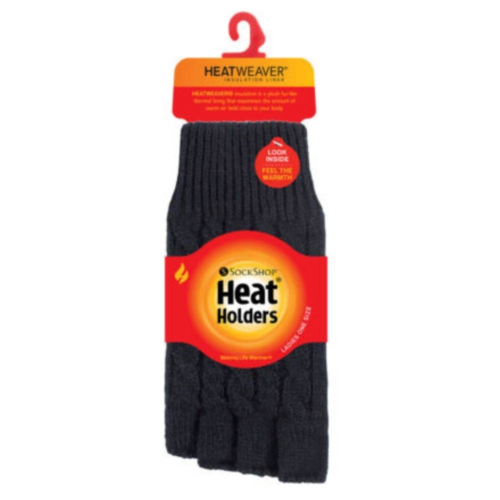 Heat Holders® – Ladies AYLA Cable Knit Fingerless Gloves – One Size – BLACK