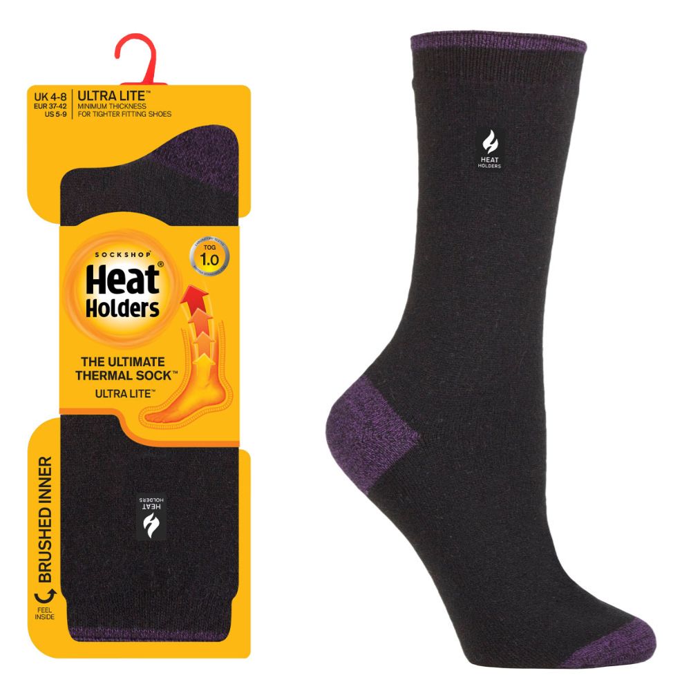 Heat Holders® – Ladies Ultra Lite Socks 1.0tog H&T OIA – Black/Purple