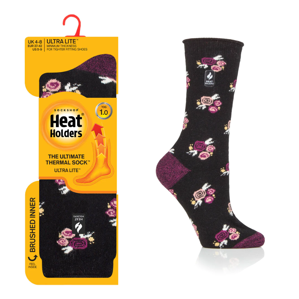 Heat Holders® – Ladies Ultra Lite Socks 1.0tog MURCIA – Floral Black