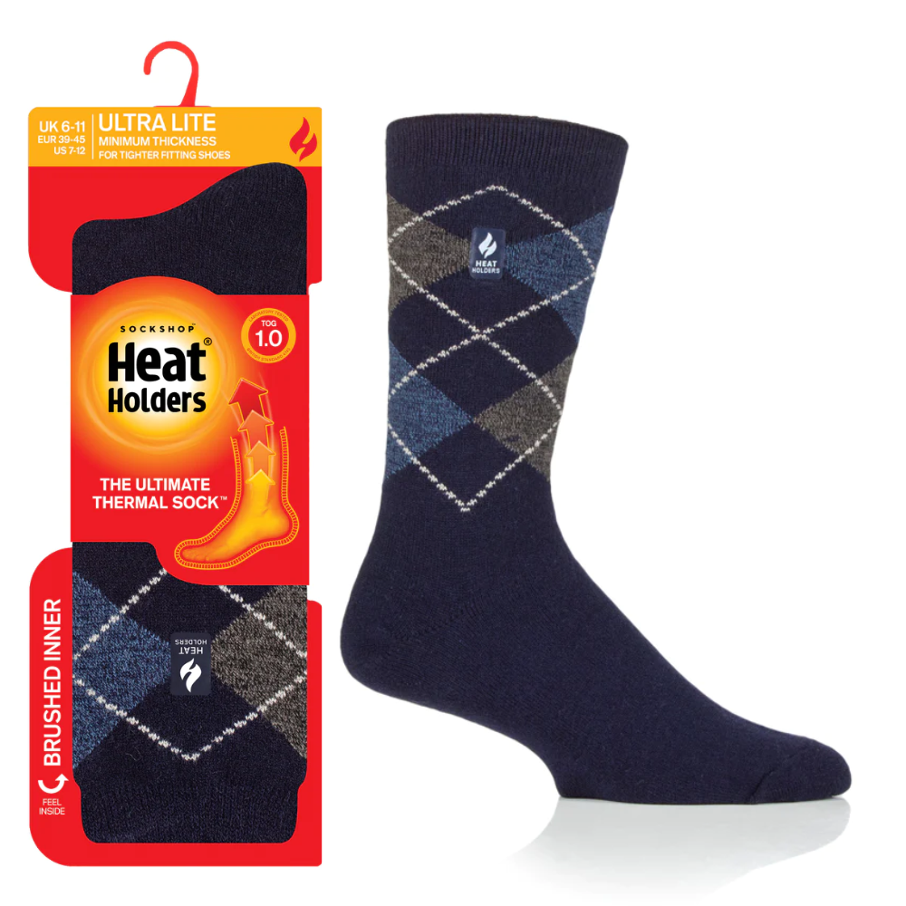 Heat Holders® – Men Ultra Lite Socks 1.0Tog CARACAS – Argyle Navy