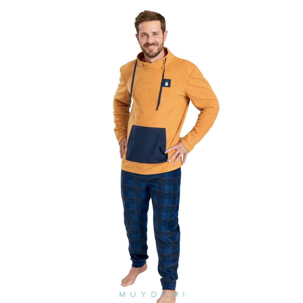 Muydemi men’s pyjamas with long-sleeved shirt and crew neck. Long pants with cuff.